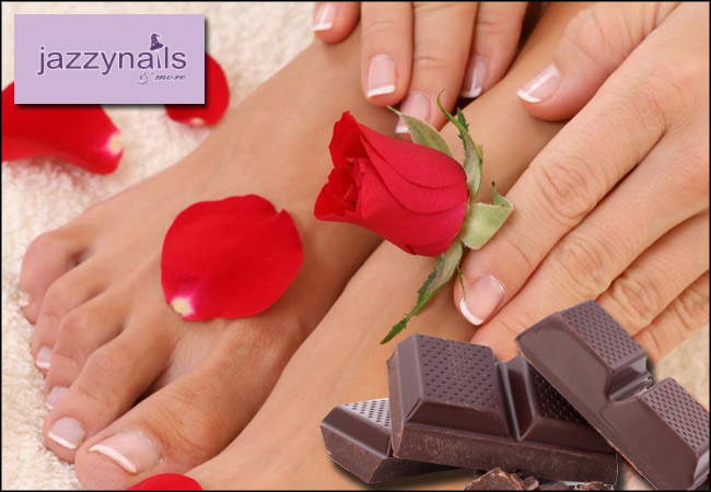 12€ για 1 ημιμόνιμο manicure, 1 pedicure, 1 spa σοκολατοθεραπείας στα πόδια και 1 σχηματισμό φρυδιών